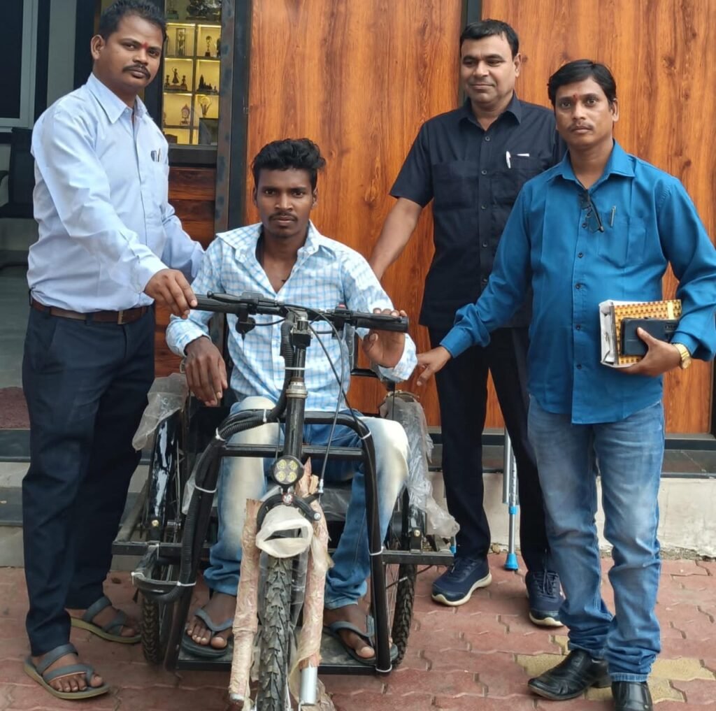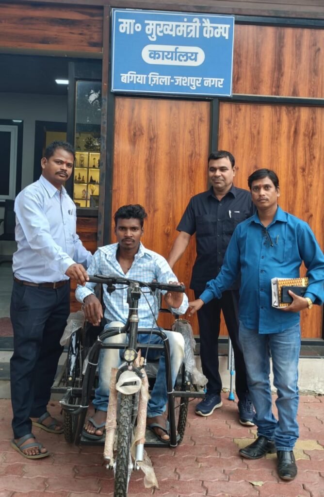 इसी कड़ी में आज कैंप कार्यालय में एक दुर्घटना की वजह से चलने फिरने में असमर्थ दुलदुला के डोडपानी के हेरालाल राम को ट्राई सायकल और वैशाखी प्रदान किया गया है। ट्राई सायकल और वैशाखी मिलने पर उन्होंने अपनी खुशी जाहिर करते हुए मुख्यमंत्री श्री विष्णुदेव साय को धन्यवाद दिया है।
