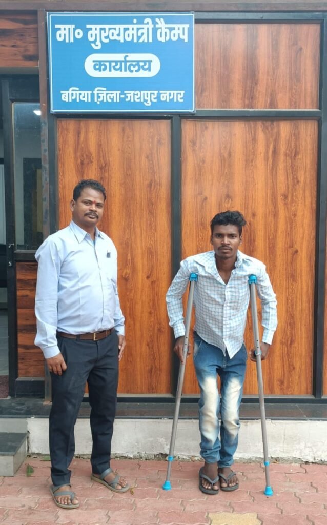 हेरालाल राम ने इस संबंध में मुख्यमंत्री कैंप कार्यालय में आवेदन देकर बताया कि दुर्घटना की वजह से वे चलने फिरने में असमर्थ हो गए इलाज कराने पर भी यह ठीक नहीं हुआ। उनकी मांग पर आज उन्हें कैंप कार्यालय में ट्राई सायकल और वैशाखी प्रदान किया गया।